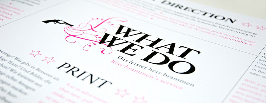 Wer in der Welt der Mode zu Hause ist, darf sich bei seiner Eigenwerbung nicht auf 08/15-Lösungen verlassen. Für die Agentur herr brammen entwickelten wir daher ein wirklich impossantes Buch im Überformat.
